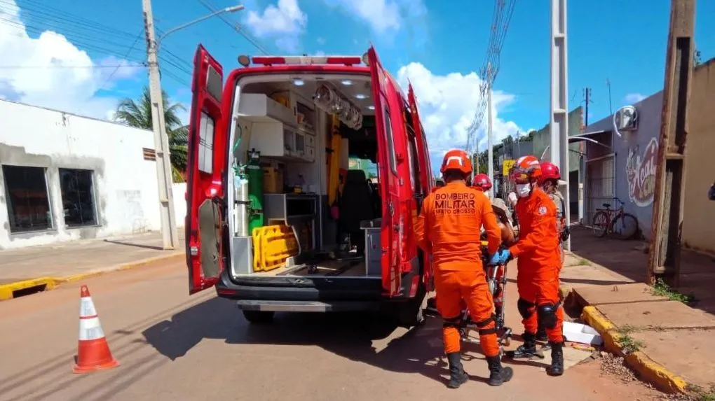 O Corpo de Bombeiros Militar de Mato Grosso (CBMMT) socorreu um jovem de 23 anos após acidente entre carro e moto em Các...